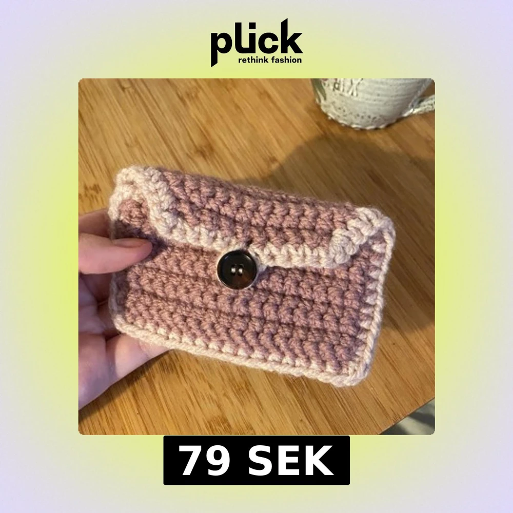 Egenvirkad gammelrosa plånbok med ljusrosa kanter, förslutande knapp & hjärtmotiv på baksidan🩷8x12cm