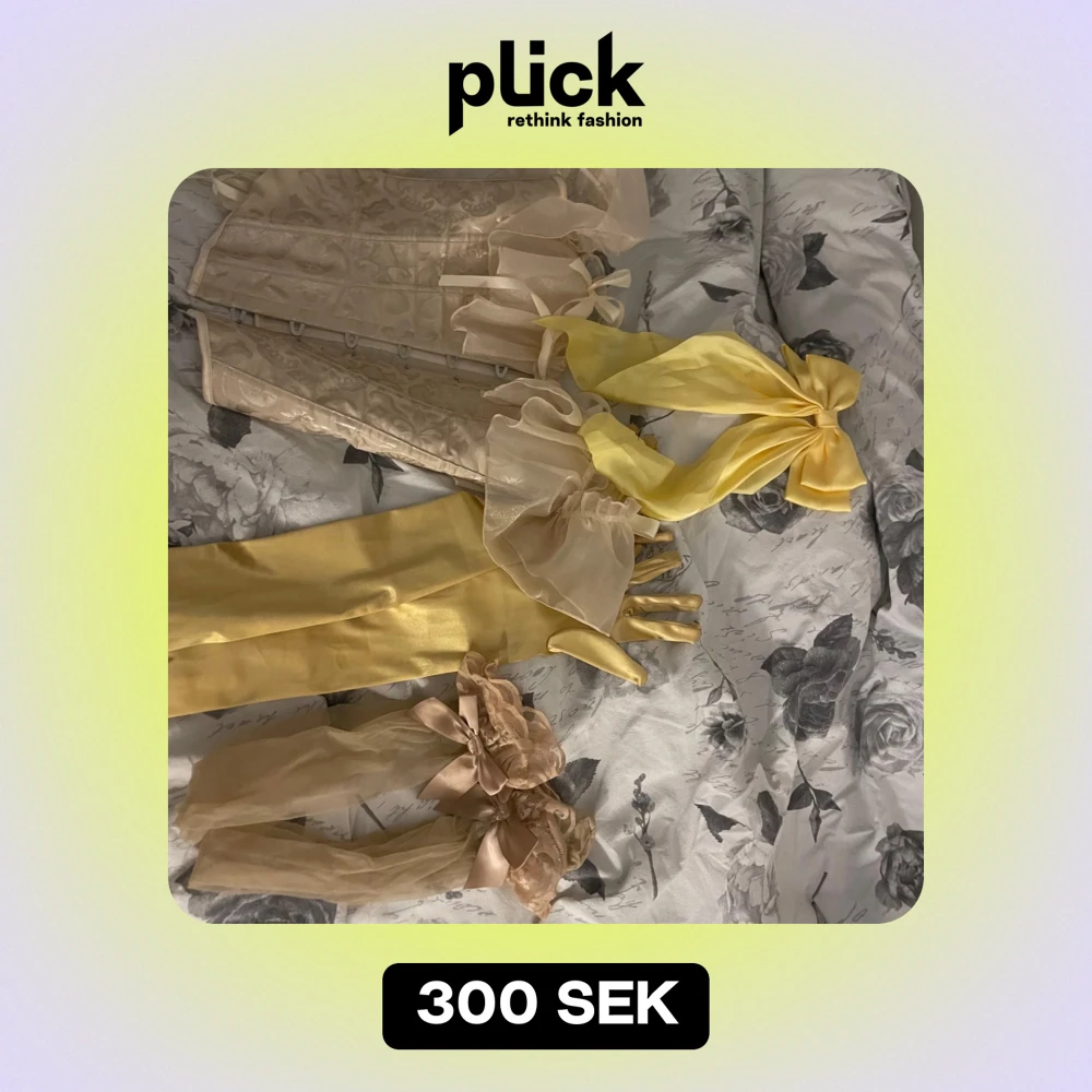 Säkjer en full Belle cosplay med korsett, sidenhaskar, rosett och knästrumpor :) kontakta för fler bilder, bilder med de på, perfekt för cosplay🩷 kan sälja saker separat bara att kontakta, köpt på amazon använd en gång