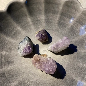 säljer dessa 4x ametist clusters 🤍 100% äkta och ethically sourced ! har endast 4x i lager, 25kr st 💌 köparen står för frakten ☺️ Varje köpare får en gratis skopa med kristall konfetti, ett klister märke och ett tack kort :)