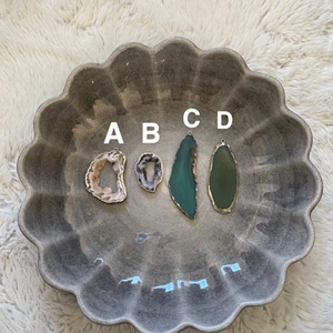 Säljer dessa söta olika agate charms ! Har endast 4x i lager, 45kr st. 🤍 A & B är geode agate och D & C är äkta färgad agate. Äkta och ethically sourced! Köparen står för frakten :)