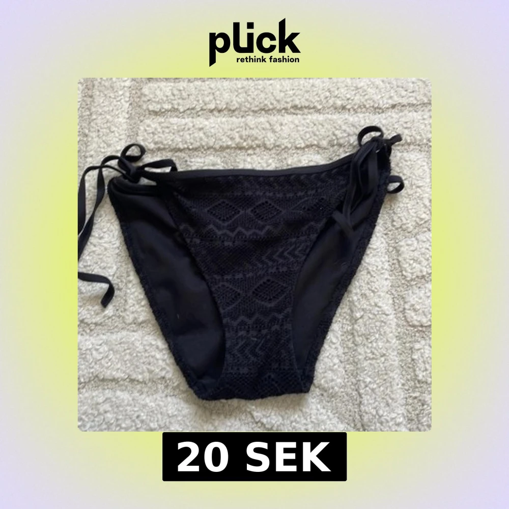 Svart bikiniunderdel från Cubus i storlek 36. Snyggt virkat mönster framtill och knytband i sidorna för en justerbar passform. Perfekt för stranden eller poolen, med en stilren och trendig look.