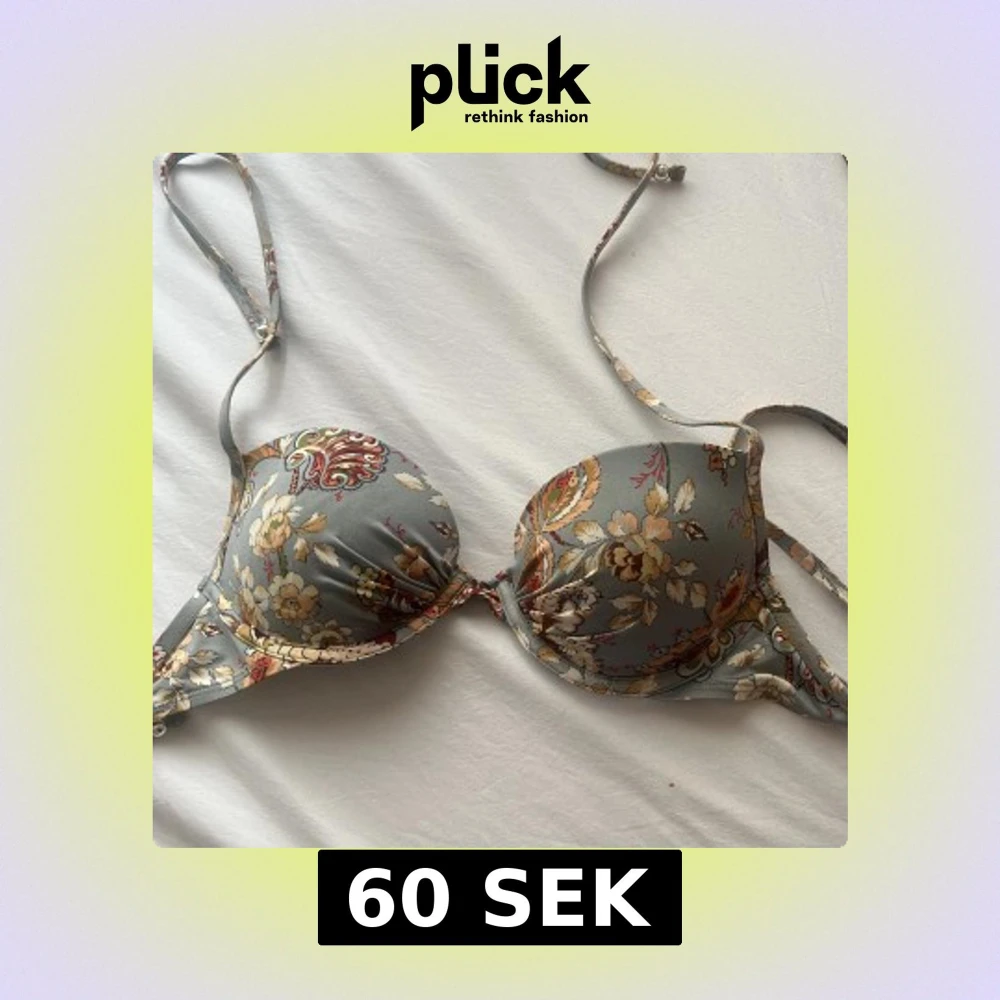Snygg bikiniöverdel med blommigt mönster från cubus. Den har knytband och silverdetaljer på banden. Knappt använd då den tyvärr är för liten🩵