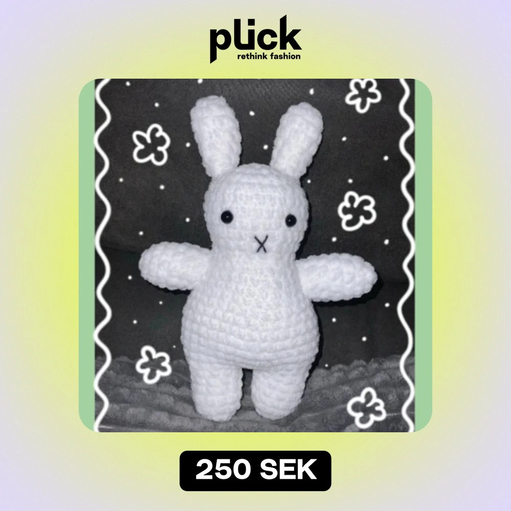 ✿ En mindre virkad kanin gjord av mig ✿ 100% mjuk polyester ✿ Ögonen är gjorda av hård plast ✿ ca 23 cm hög ✿ DM vid intresse (swish) eller ”köp nu” ✿ Dm vid frågor! ^^