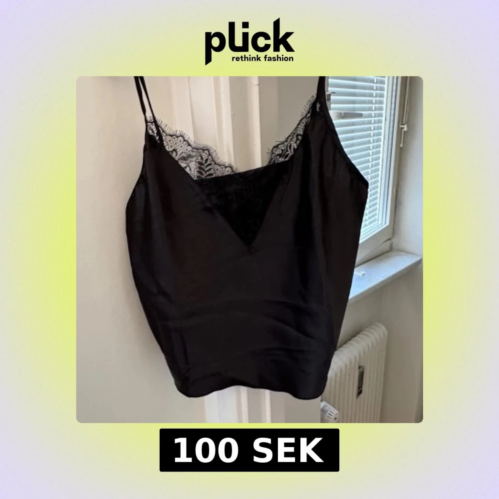 Elegant svart spets pyjamas. linne med smala axelband och v-ringning. Toppen har vackra spetsdetaljer vid halsringningen som ger en lyxig känsla. Aldrig använd.