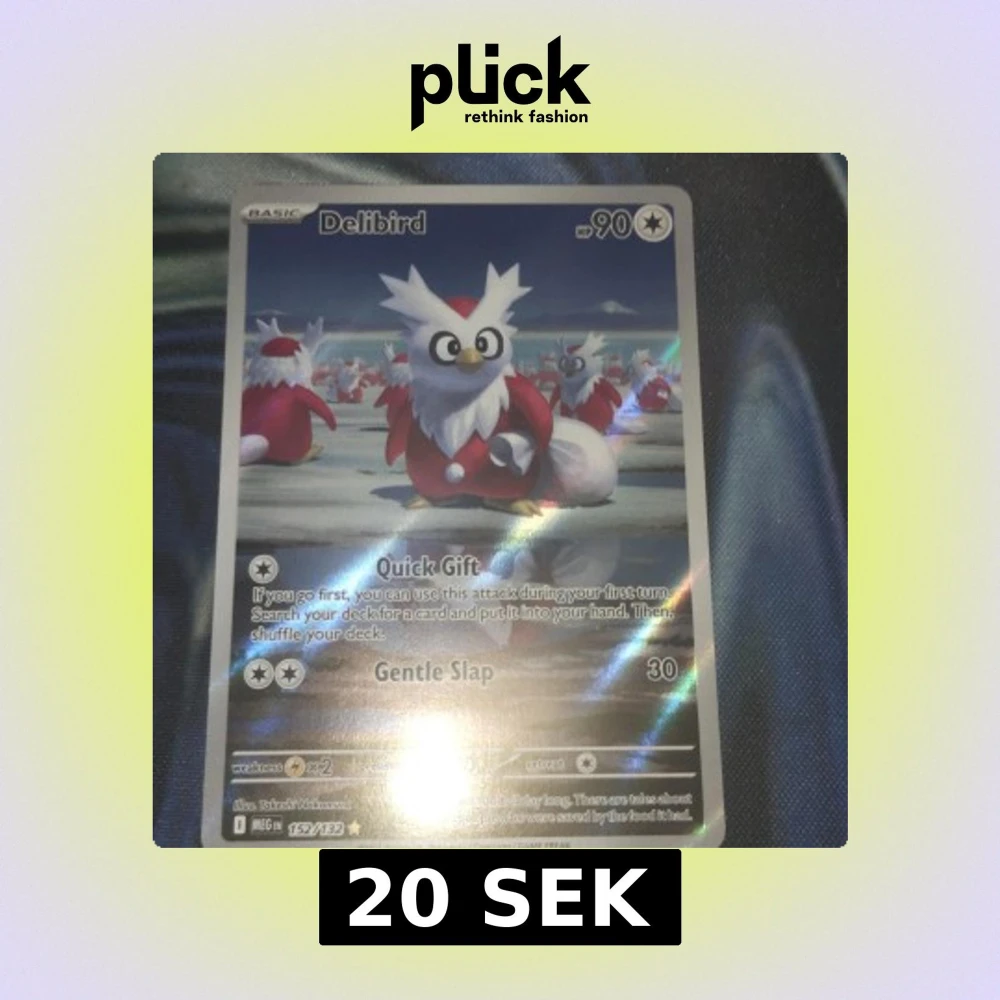 Coolt Pokémonkort med Delibird! Perfekt för dig som samlar eller spelar Pokémon TCG. Kortet har snygg design och är i fint skick. Ett måste för alla unga Pokémonfans som vill utöka sin samling med något unikt och roligt.