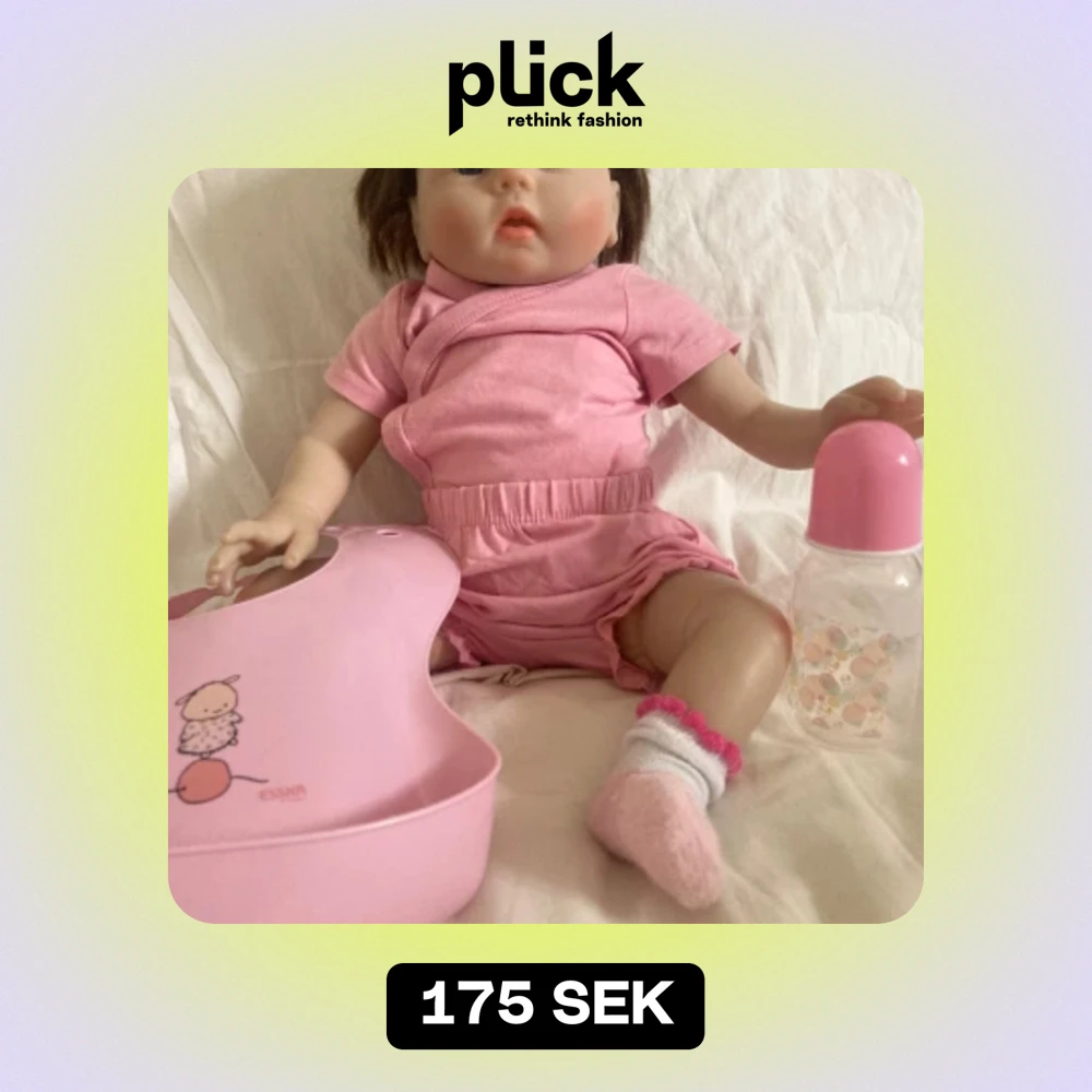 En fin docka i bra skick! Dockan har tyg kropp med silikon delar. Den säljs med kläderna den har på sig, nappflaska och haklapp (allt köpt till dockan). Orginal pris ca 400/500kr Säljs för 175kr men priset kan diskuteras.