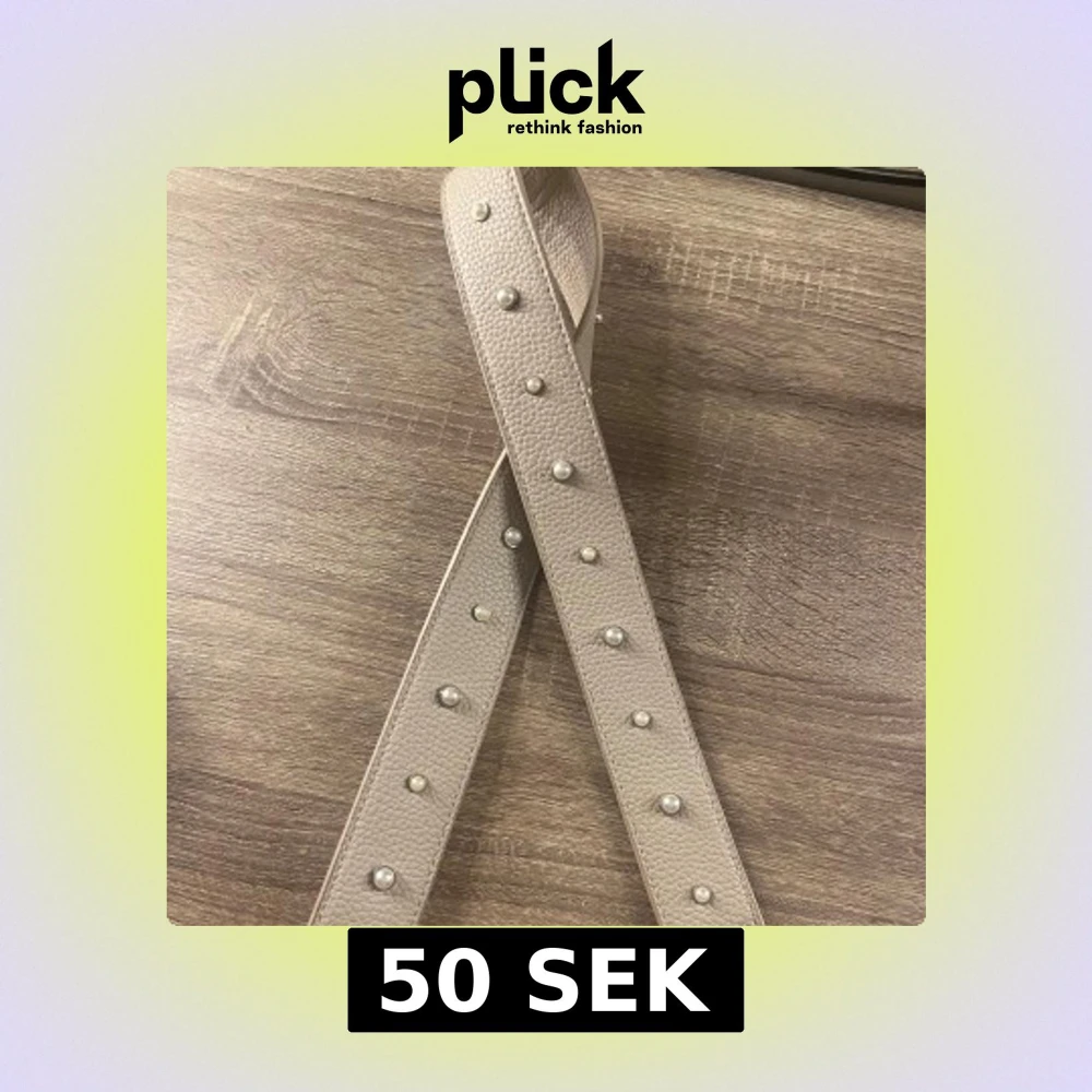 Snyggt beige väskband från Don Donna med pärldetaljer. Tillverkat i skinn med en texturerad yta och silverfärgade spännen. Perfekt för att ge en elegant touch till din outfit.
