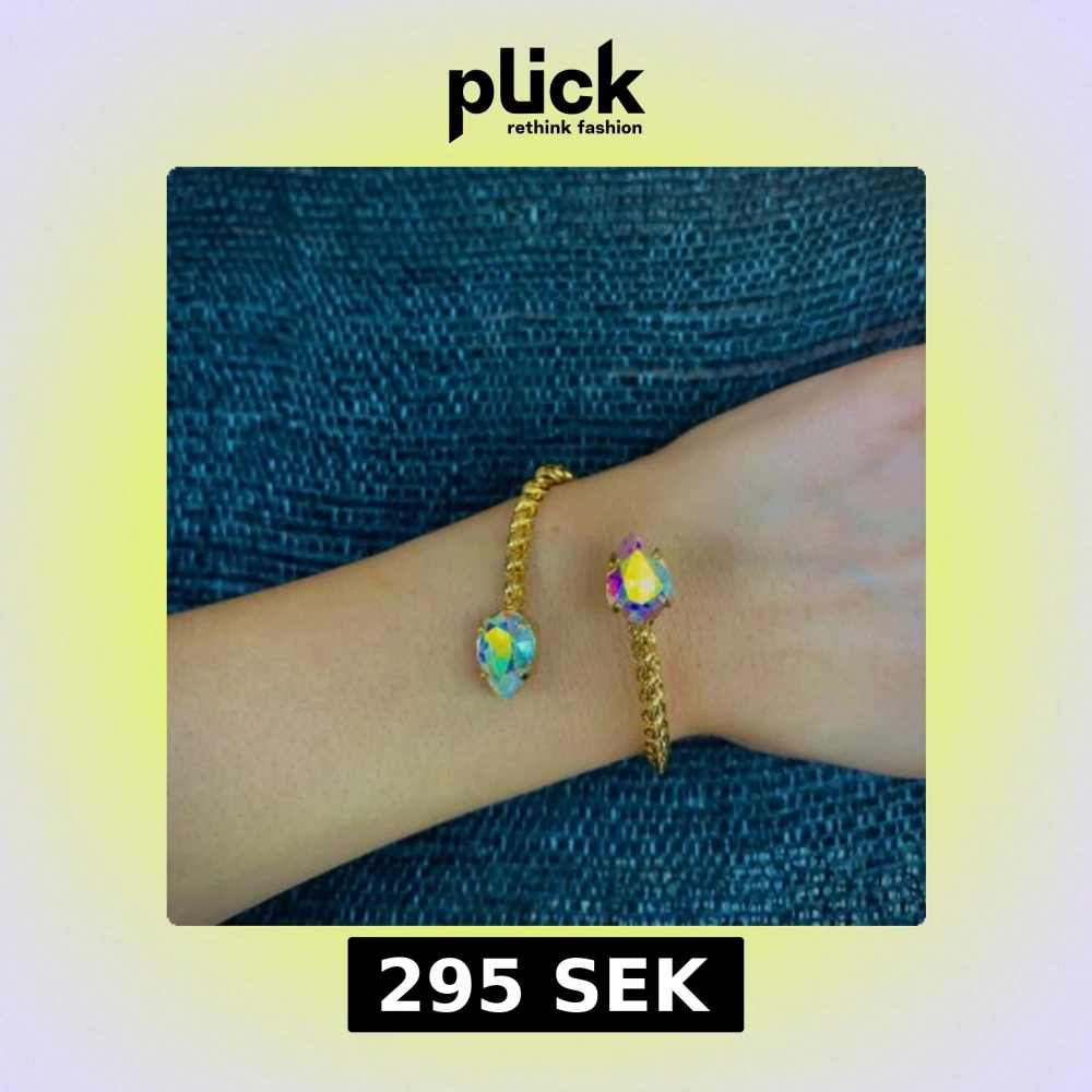 stilrent armband med guld pläterad mässing samt kvalitativa aurora kristaller, ställbar, kristallstorlek - 10x14mm🤍