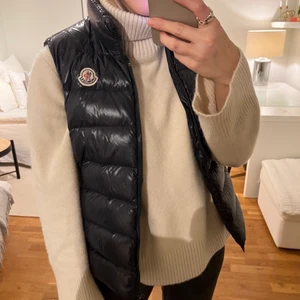 Säljer min fina mörkblåa Moncler väst! Fortfrande väldigt fin i kvaliten 🤍 Kvitto finns! Stl 1
