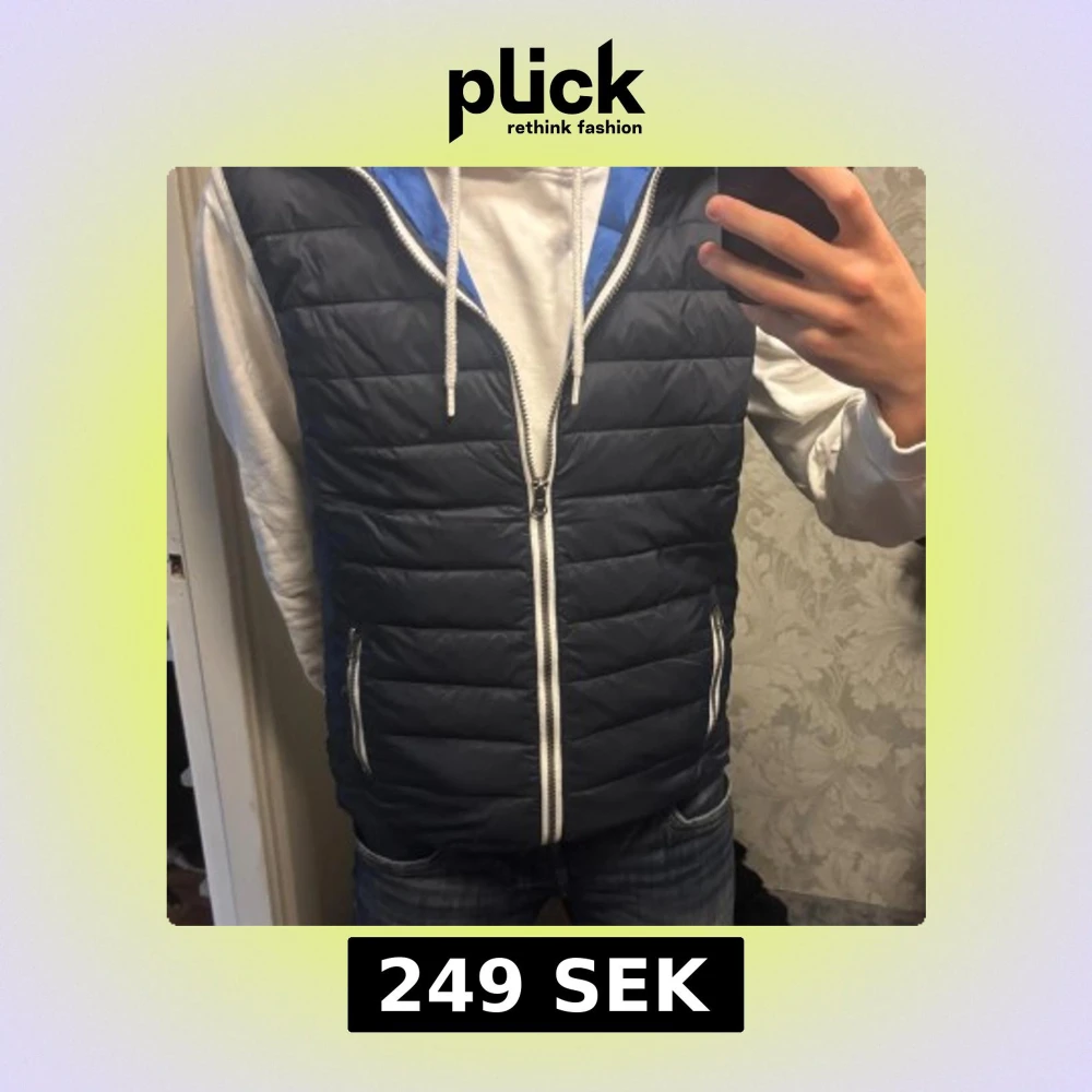 Säljer min mörkblåa dunväst från East West. Den är i storlek M och har lite defekter i färg på baksidan, men som kan gå att tvättas bort. Skriv till mig vid funderingar!