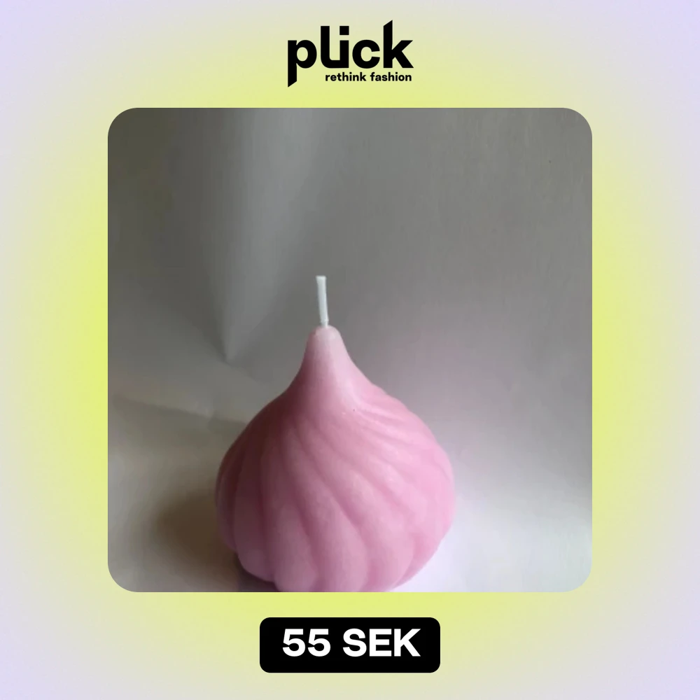 Ljusrosa hemmagjort stearinljus med doft av jordgubb och mintđ