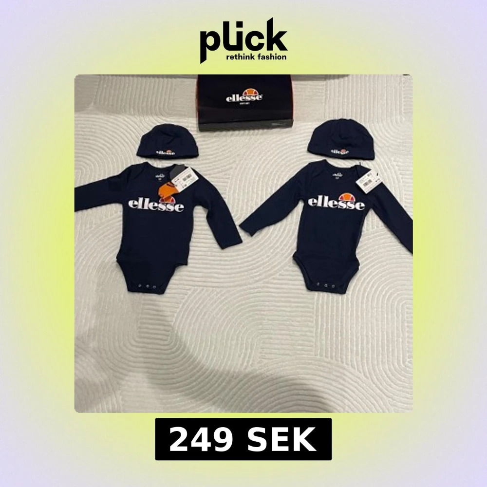 Ellesse baby set i mörkblått body + mössa. Storlek: 12-18 månader. Helt nya, med taggar kvar och originalförpackning.