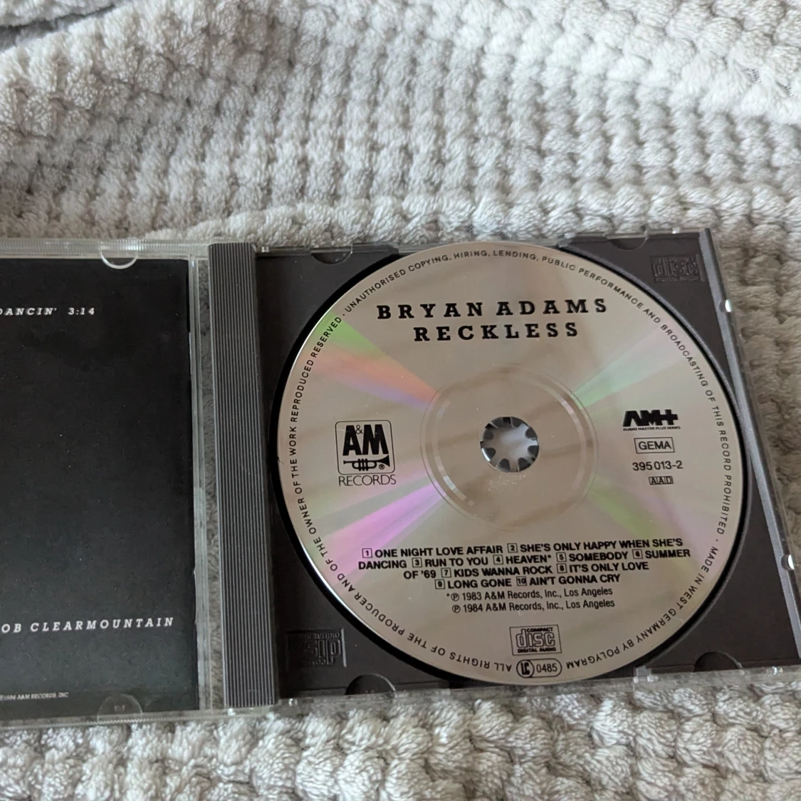 Säljer en CD av Bryan Adams med albumet 'Reckless'.