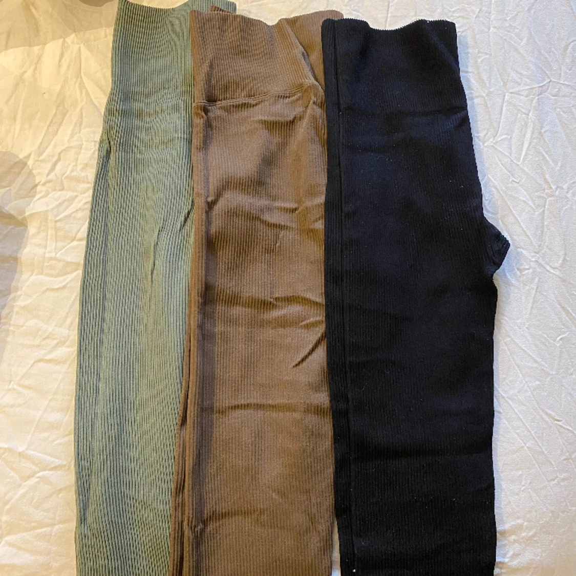 3 st ribbade träningstights i olika färger Priset gäller alla 3