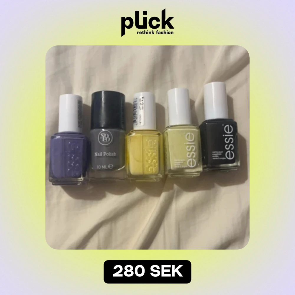 säljer dessa 5 nagelack, 4 från essie och 1 som jag inte vet, säljer essie för 75 styck (aldirg använda, original pris är 140kr), säljer det gråa för 20 eftersom jag inte vet vart de är ifrån. alla 5 för 280 (paketpris)