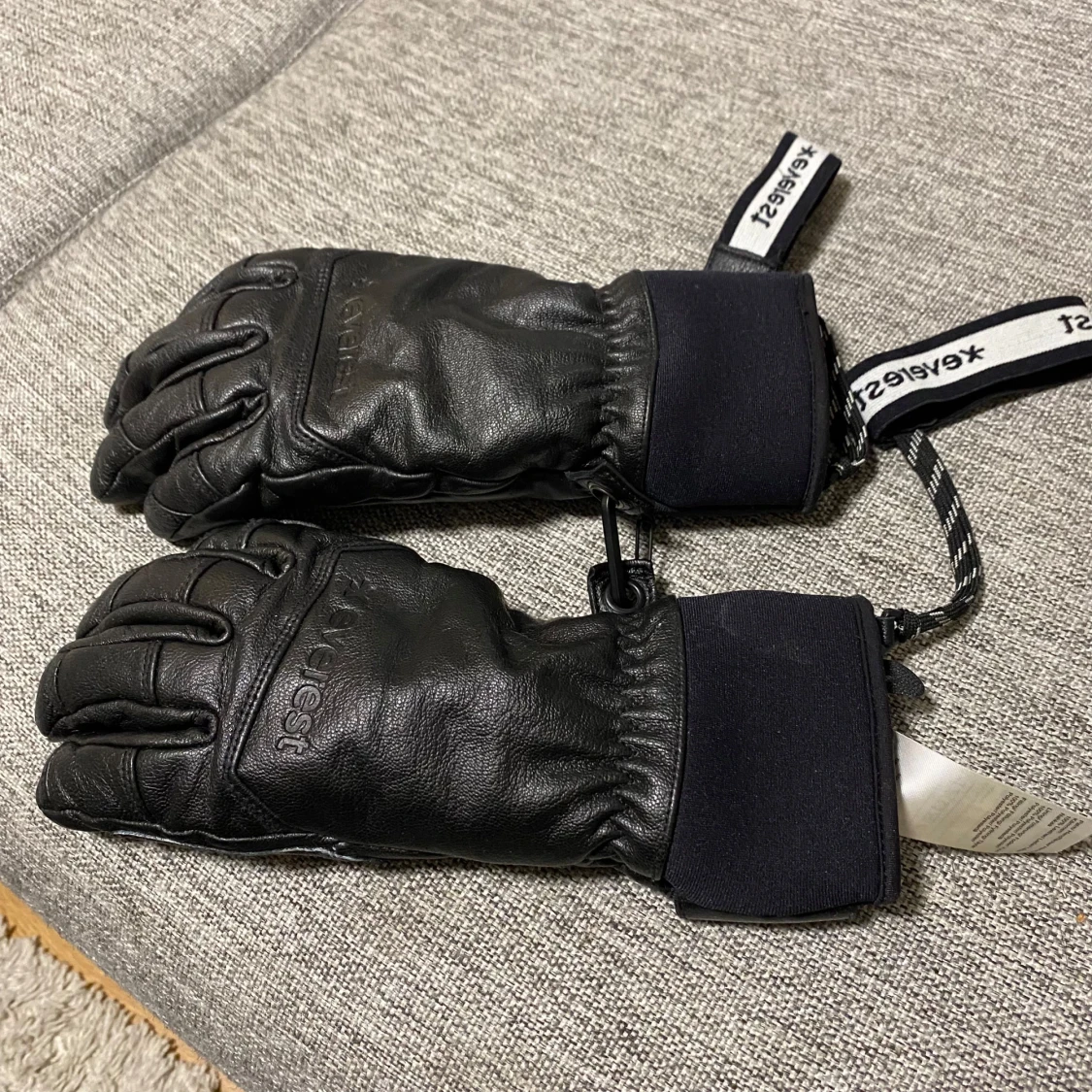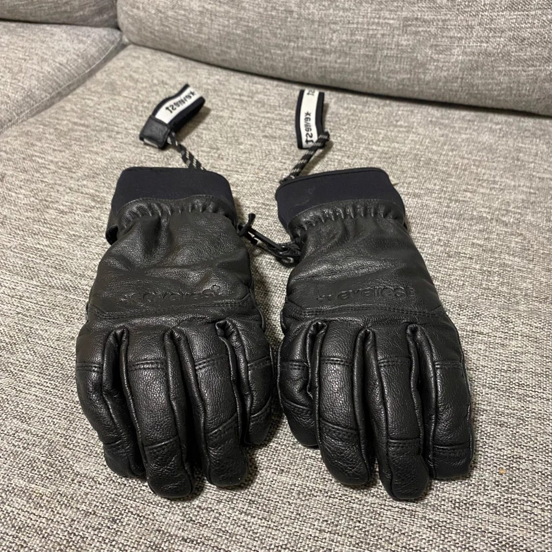 Säljer ett par svarta läderhandskar från Everest. De är i fint skick med elastiska muddar och justerbara remmar för perfekt passform. Perfekta för vinterns kalla dagar! 🖤