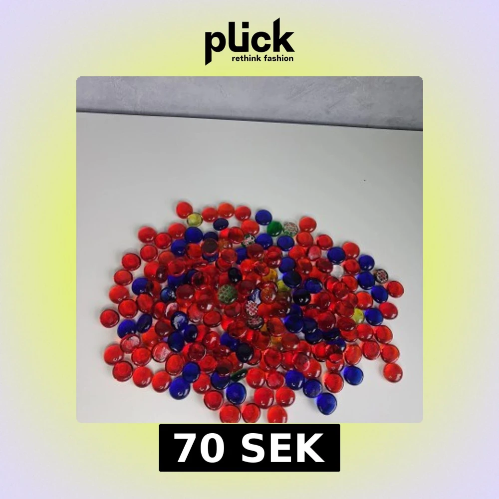 Säljer detta set med 196 glasstenar i olika färger som tex blå,röd,gul,grön. 12st av dessa har ett nät på baksidan. Passar utmärkt som dekoration i ett akvarium, lägga i rabatten,pyssla med eller bara ha som dekoration