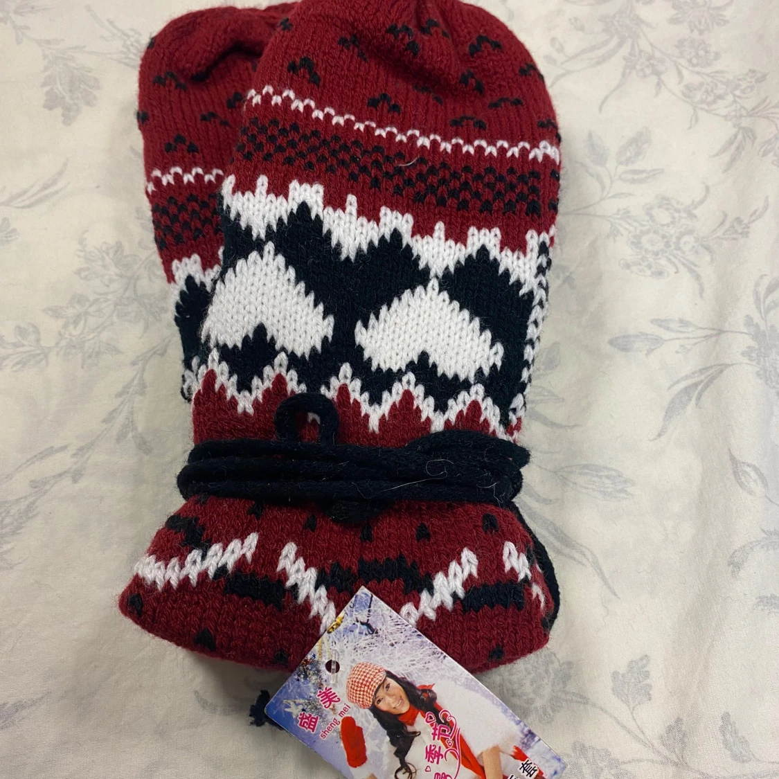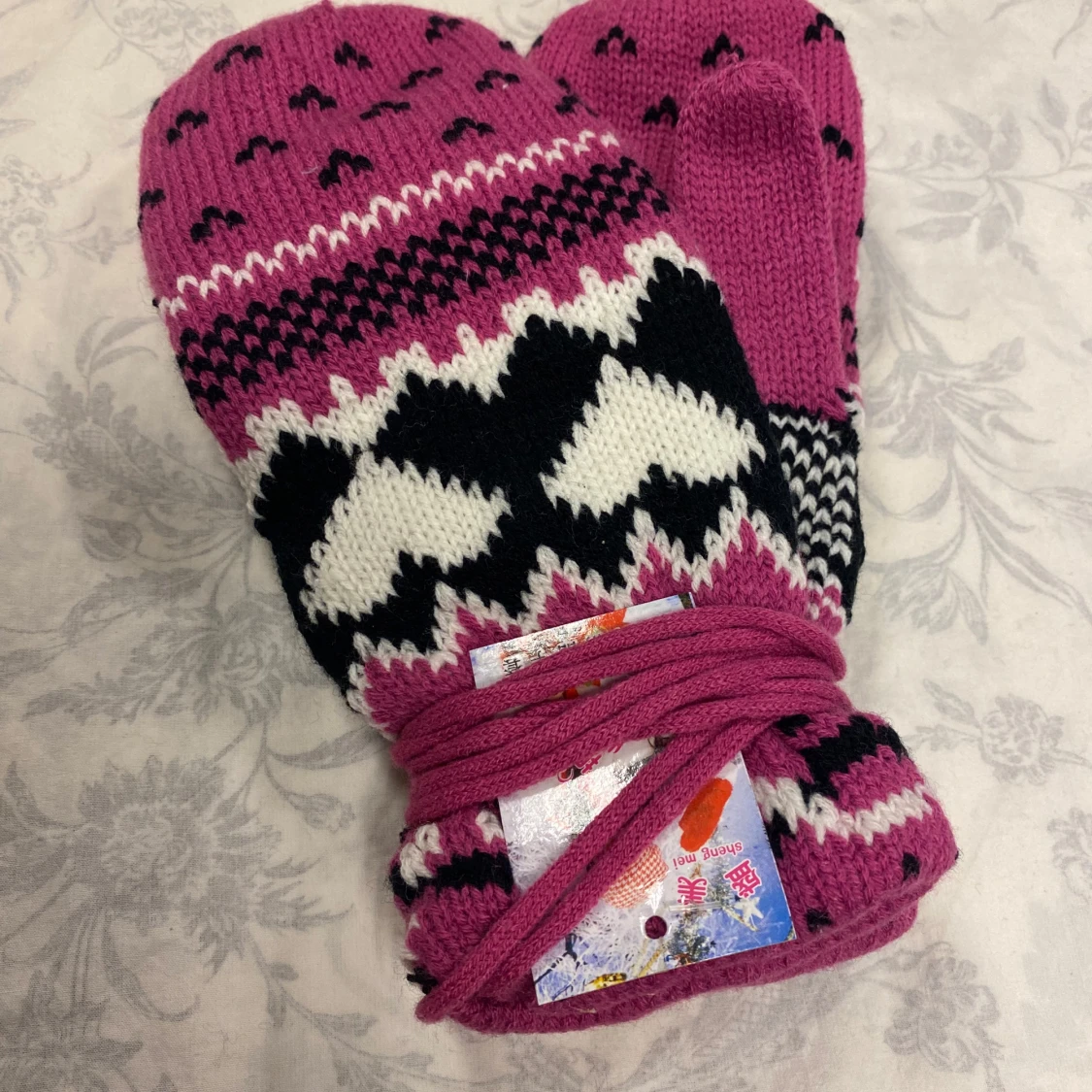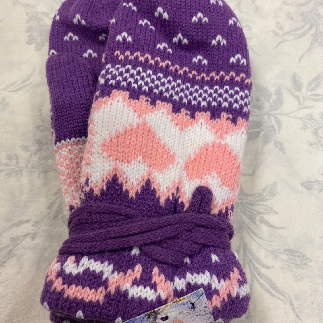 Säljer flera par färgglada stickade vantar med mönster i olika färger. Perfekta för vintern med sina varma och mjuka material. Finns i lila, röd, rosa och svart med vita och svarta detaljer. De har ett fint mönster med hjärtan och andra geometriska former. Passar perfekt för att hålla händerna varma i kylan! Stlk L 89kr/par
