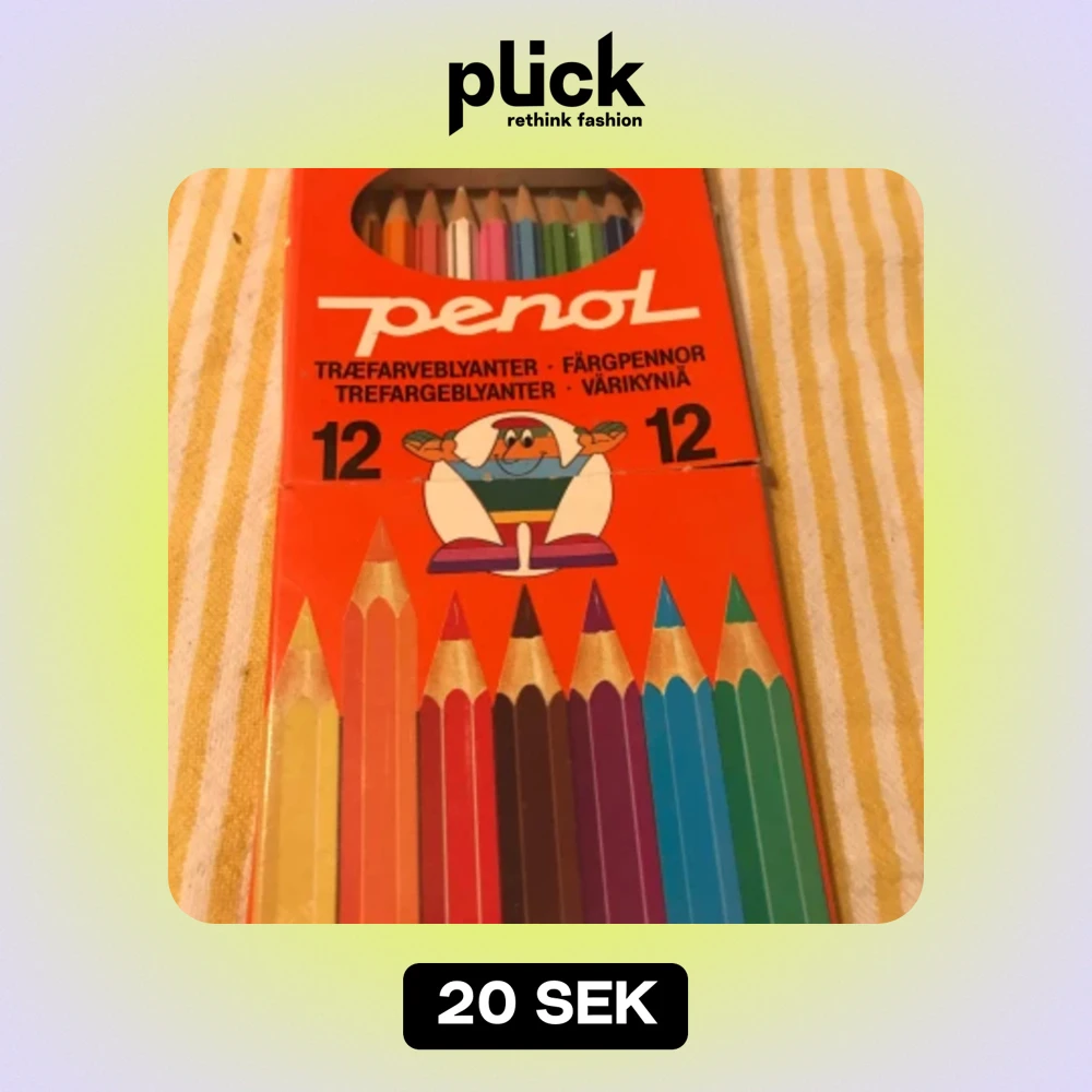 Säljer ett set med 12 färgpennor från Penol. Pennorna kommer i en färgglad förpackning med en rolig illustration av clowner på baksidan.. Tillverkade i Thailand. Kan skickas emot frakt eller mötas upp i Hbg