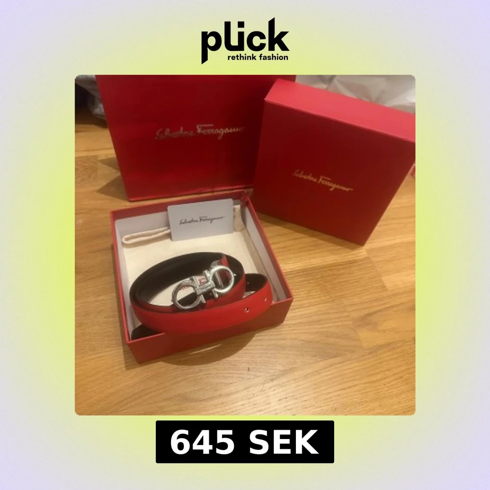 Snyggt rött bälte från Salvatore Ferragamo i skinn med ikoniskt silverfärgat spänne. Bältet har en stilren design med svarta kanter och klassisk Ferragamo-logga på spännet. Perfekt accessoar för att lyfta din outfit. Lite slimmare modell för women men funkar till alla