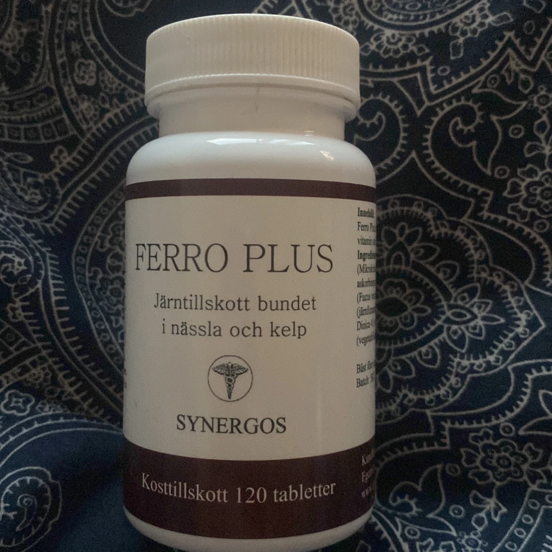 Ferro Plus är ett järntillskott bundet i nässla och kelp från Synergos. Burken innehåller 120 tabletter och är designad i vitt med bruna detaljer. Perfekt för dig som behöver ett extra tillskott av järn i vardagen.