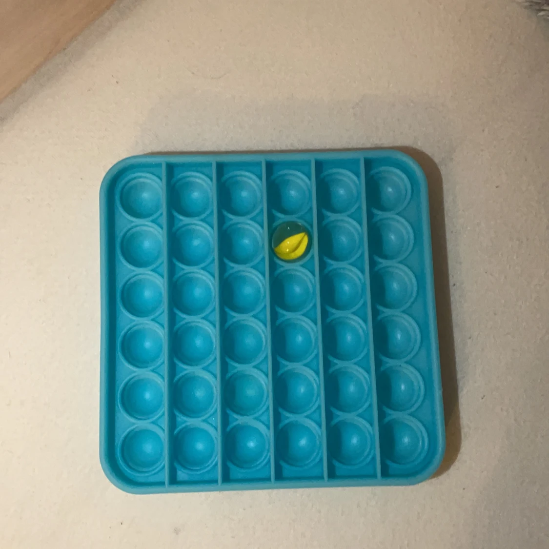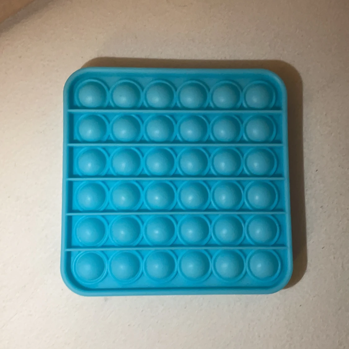 En blå fidget toy som jag inte använder mer, bra skick och det med följer kula till och den lyser även i mörkret