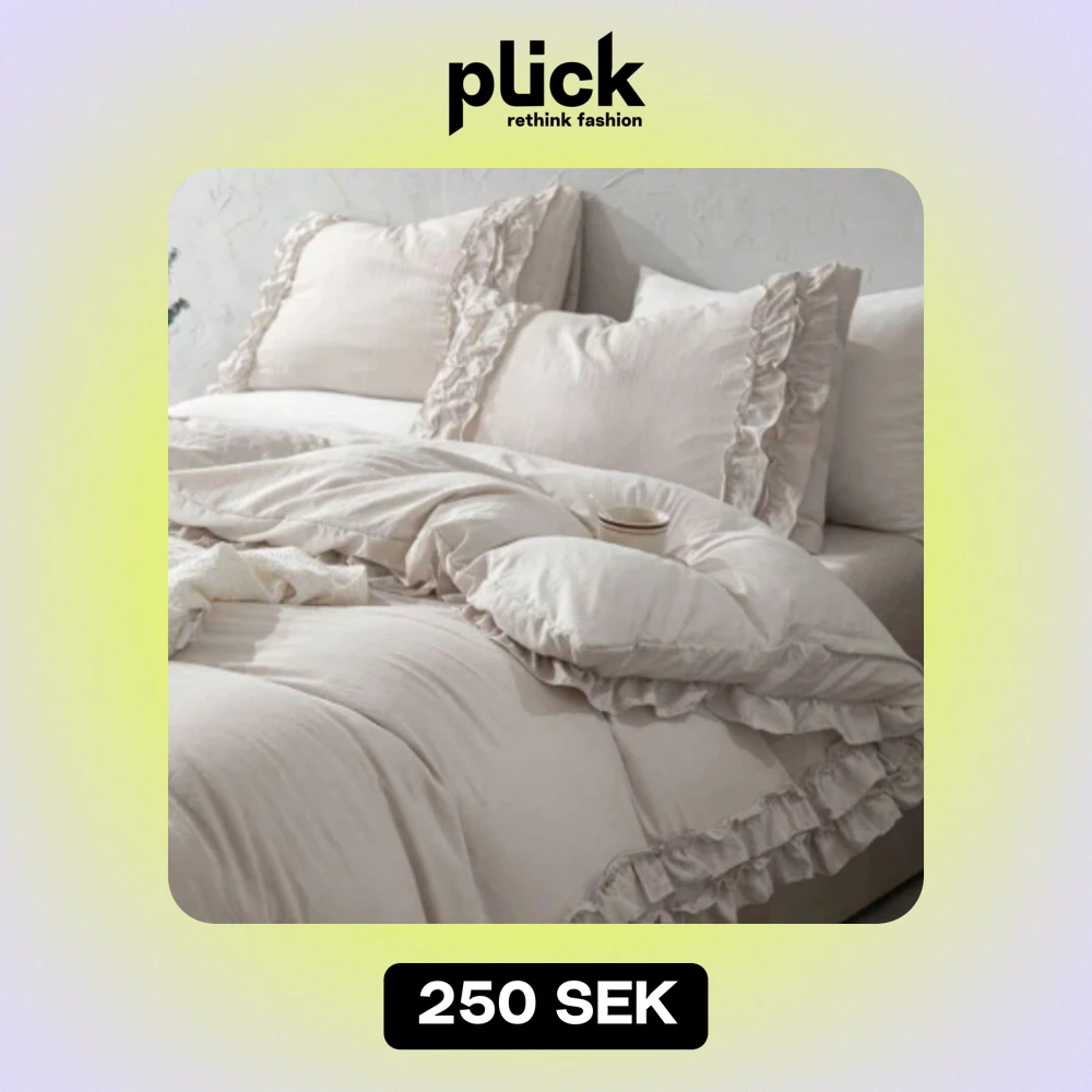 Säljer detta jättefina påslakansettet med volang ifrån Shein. Det är helt oanvänt därav bilder från sheins hemsida med det ser ut som på bild. Säljer pga för stort för mig. Hör av dig vid funderingar💗💗