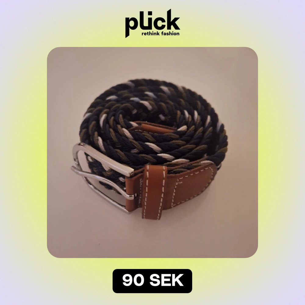Säljer ett snyggt flätat bälte i blått, grönt och vitt med bruna läderdetaljer. Bältet har en silverfärgad spänne och är perfekt för att ge en stilren touch till din outfit. Passar både till vardags och fest. Perfekt för alla säsonger!