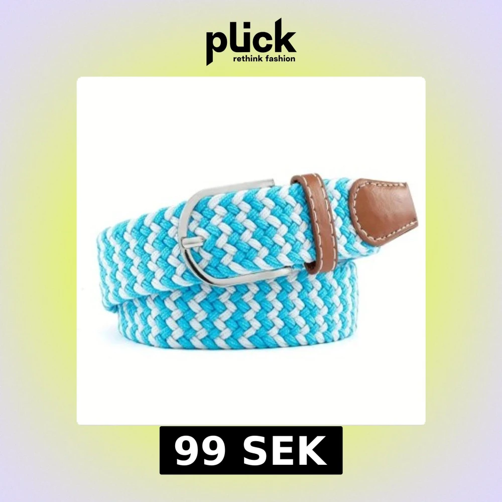 Snyggt flätat bälte i blått och vitt med bruna skinn-detaljer. Perfekt för att ge en färgklick till din outfit. Bältet har ett silverfärgat spänne och är justerbart för bästa passform.