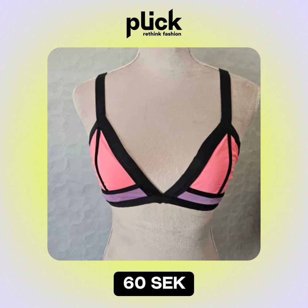 En flerfärgad bikiniöverdel från Hunkemöller i storlek M. Överdelen har en kombination av rosa, lila och svarta detaljer med en unik design på ryggen med dubbla band.