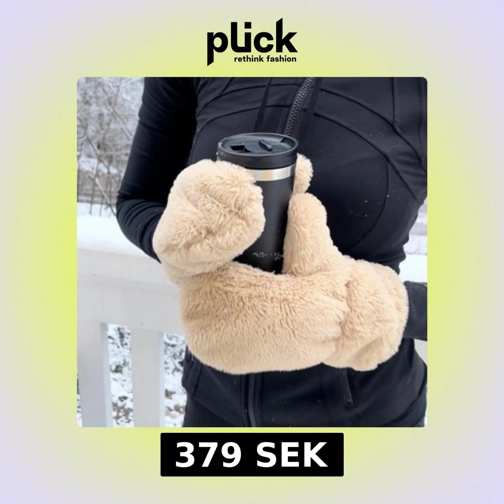 Mysiga och varma, handsydda beigea fluffiga vantar perfekta för kalla vinterdagar. De är designade för att hålla händerna varma och bekväma, samtidigt som de ger en stilren look. Perfekt accessoar för vintern! Går att vika upp och ner mudden för att justera storleken så den passar alla storlekar.