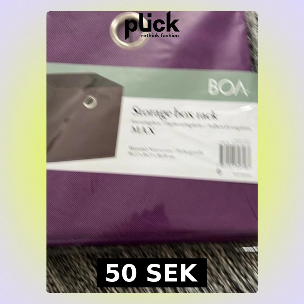 Bilderna visar en lila förvaringsbox från BOA Design, inte en väst. Produkten är tillverkad i non-woven material och har en metallring för enkel hantering. Måtten är 27x27x28 cm.