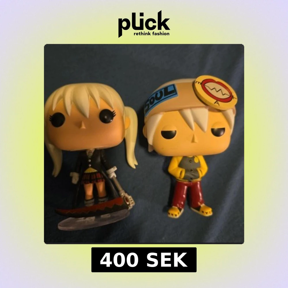 Säljer ett par Pop! Vinyl-figurer från anime-serien Soul Eater. Figurerna föreställer Maka Albarn och Soul Evans. Perfekta för samlare eller fans av serien.