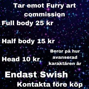 Kontakta före köp. Säljer furry art commissons. Vi försöker få ihop pengar till cosplay convent. /Ronja/Elin