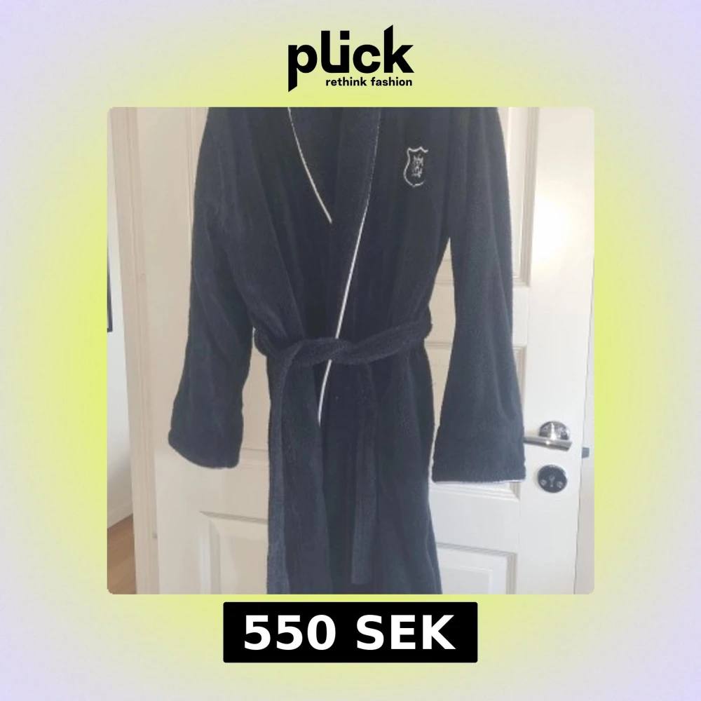 Säljer en svart badrock från Gant Home i storlek L. Badrocken är i mjuk frotté, har vit piping längs kanterna, broderad logga på bröstet och knytskärp i midjan. Perfekt för chill efter duschen eller morgonmyset.