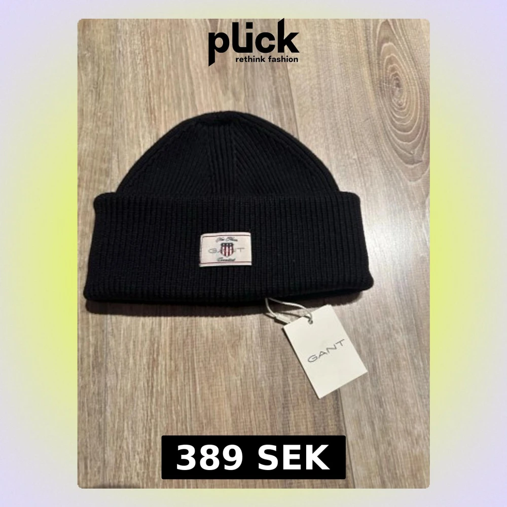 Svart ribbstickad mössa från GANT med uppvikt kant och snyggt broderad patch framtill med logga och texten 'New Haven Connecticut'. Klassisk och stilren design som passar perfekt till kalla dagar.