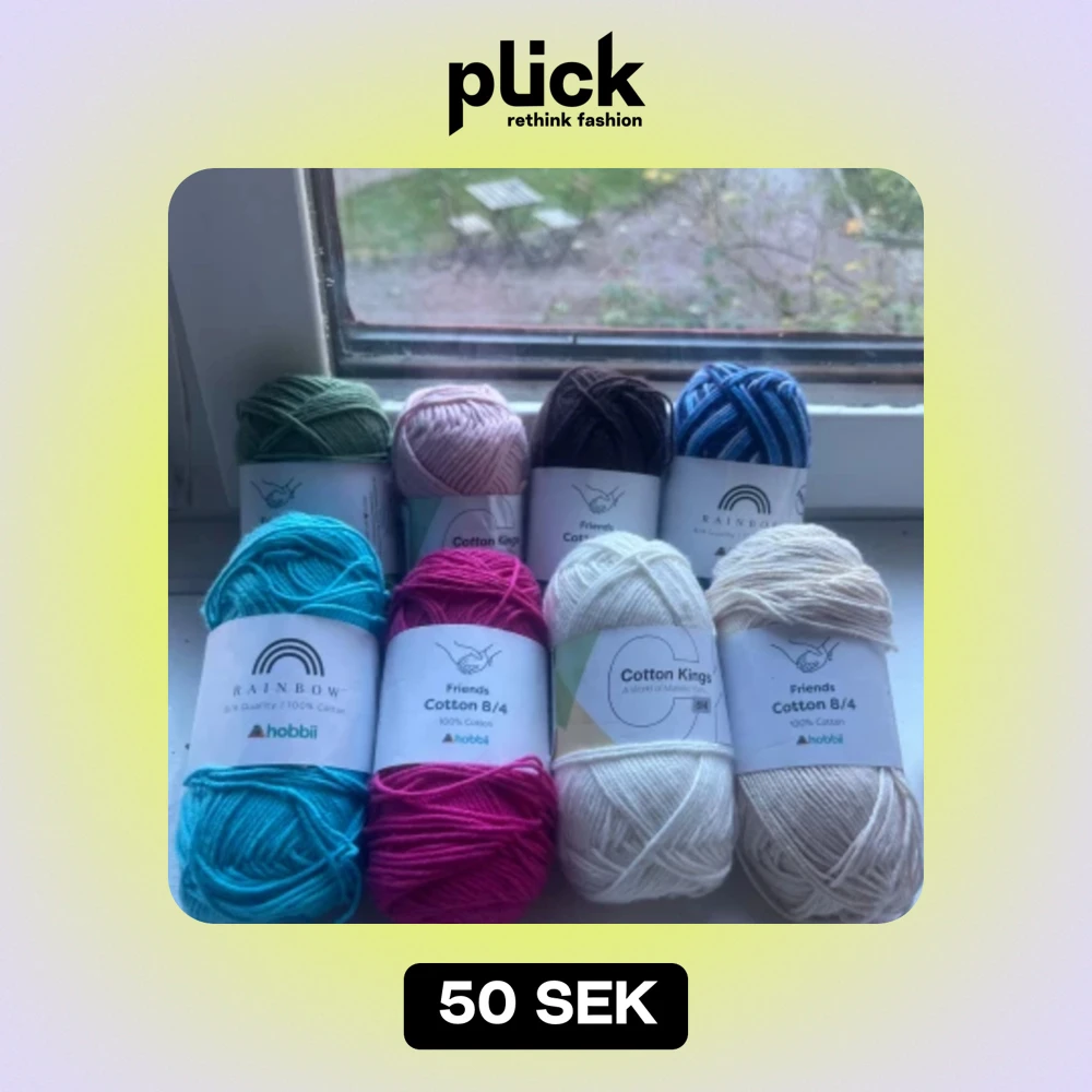 Garn från cotton kings alla ca 50g och 100% bomull kan köpas separat för 10kr eller alla 8 för 70 annat antal och pris kan diskuteras