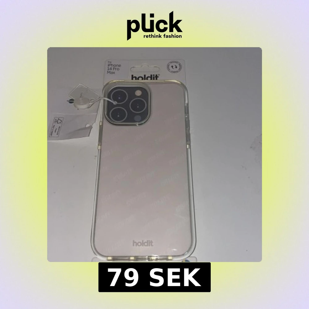 Säljer ett stilrent och genomskinligt mobilskal från Holdit, designat för iPhone 14 Pro Max. Skalet är tillverkat av återvunnet material och är kompatibelt med MagSafe. Perfekt för att skydda din telefon utan att dölja dess design.