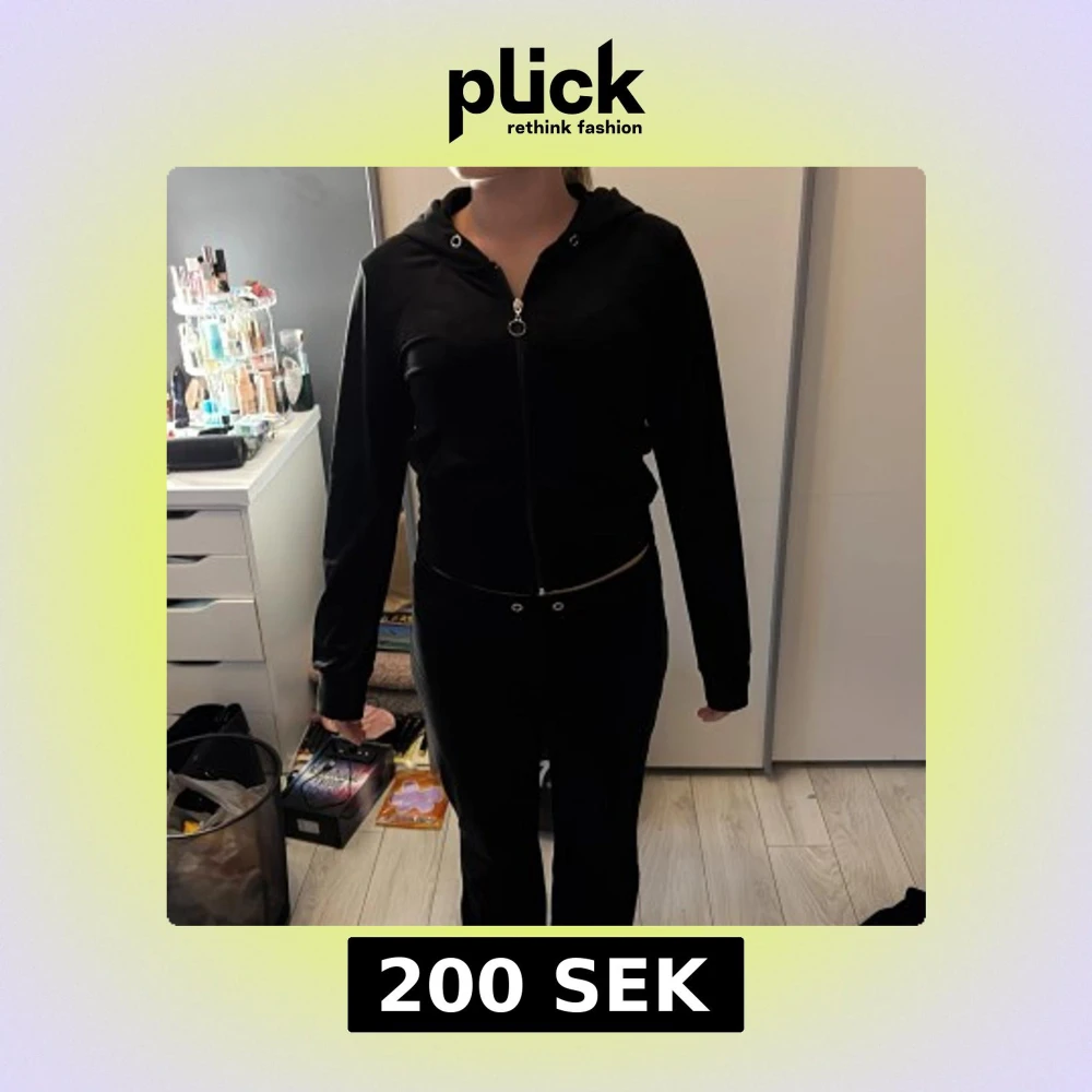 Svart hoodie med dragkedja och matchande byxor från Gina Tricot.