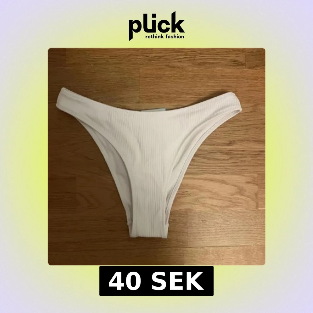 Säljer denna vita bikiniunderdelen från H&M då den är för stor för mig! Tjock, ribbad och syns ej igenom! Prislappen och skyddet sitter kvar och den är endast testad en gång med dubbelt skydd så i princip oanvänd!
