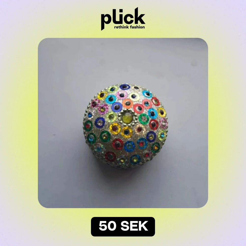 Rund liten ask med dekor på. Kan användas som förvaring för örhängen eller ringar. 🩷😊