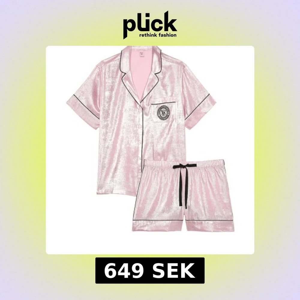 Snygga glittriga rosa pyjamasshorts från Victoria's Secret med svart snörning i midjan och svarta detaljer längs kanterna. Mjukt och glansigt material som känns lyxigt mot huden. Perfekta för mysiga kvällar hemma.