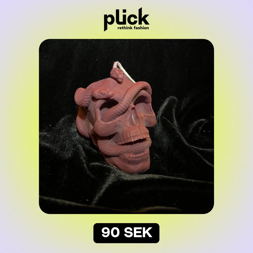 Rött ljus format som en dödskalle med en orm slingrande genom ögonhålorna gjort av återvunnet stearin