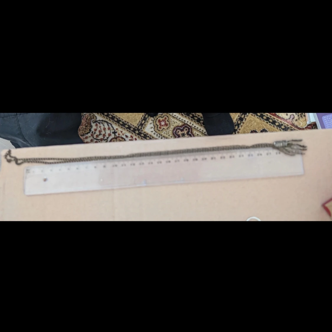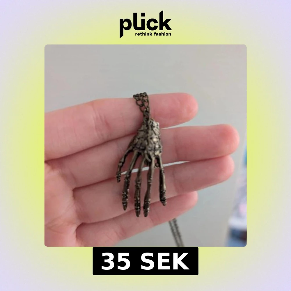 Unikt halsband med ett hänge format som en skelett-hand i antikguld. Kedjan är lång och passar perfekt för dig som gillar alternativa eller gotiska smycken. Snygg detalj till din outfit!