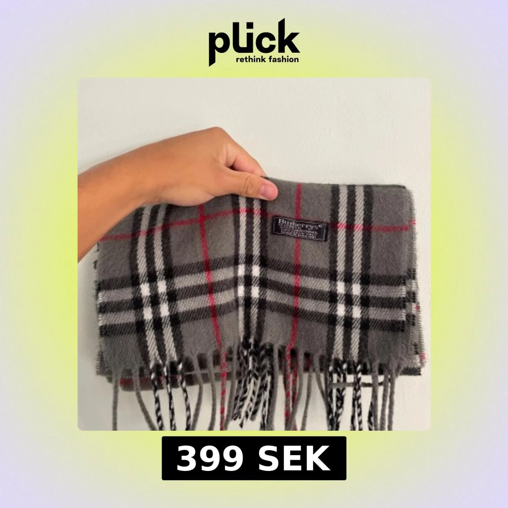 Klassisk grå halsduk från Burberrys i mjuk ull med rutigt mönster i svart, vitt och rött. Halsduken har fransar i ändarna och den ikoniska Burberrys-loggan på en etikett. Perfekt accessoar för kalla dagar och snygg till jackan.