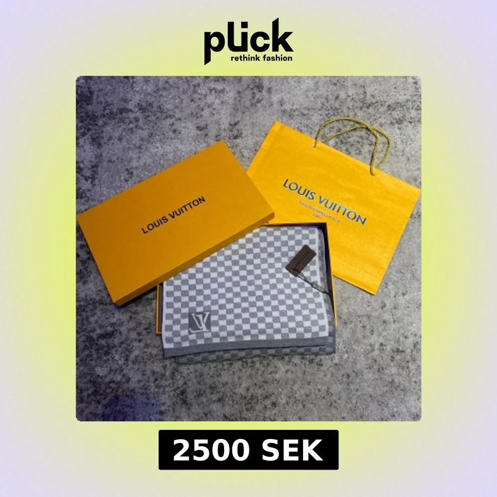 Grå rutig halsduk från Louis Vuitton - Snygg halsduk från Louis Vuitton i grått och vitt med klassiskt rutigt mönster. Halsduken har en rektangulär form och är dekorerad med LV-logga i ena hörnet. Perfekt för dig som vill ha en stilren accessoar med lyxig känsla.