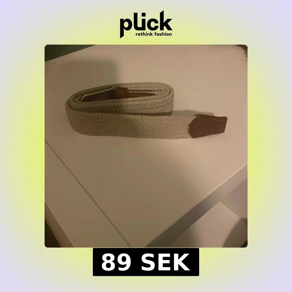 Snyggt beige flätat bälte med bruna skinnändar och silverfärgat spänne. Perfekt för att ge en stilren touch till din outfit. Passar både till jeans och chinos.