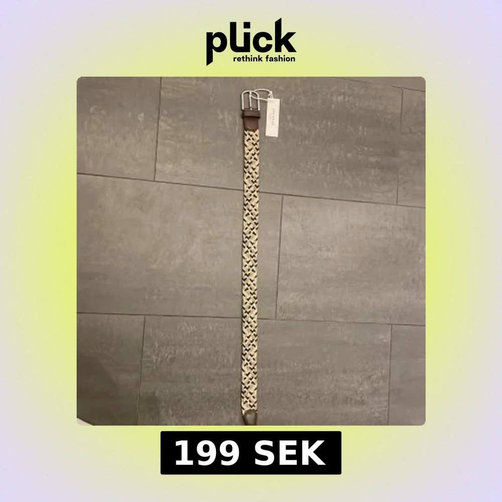 Snyggt flätat bälte från Onewear i beige och brunt med silverfärgat spänne. Perfekt för att ge en stilren touch till din outfit. Bältet har detaljer i brunt skinn vid spännet och ändarna. Aldrig använd. Med tagg.