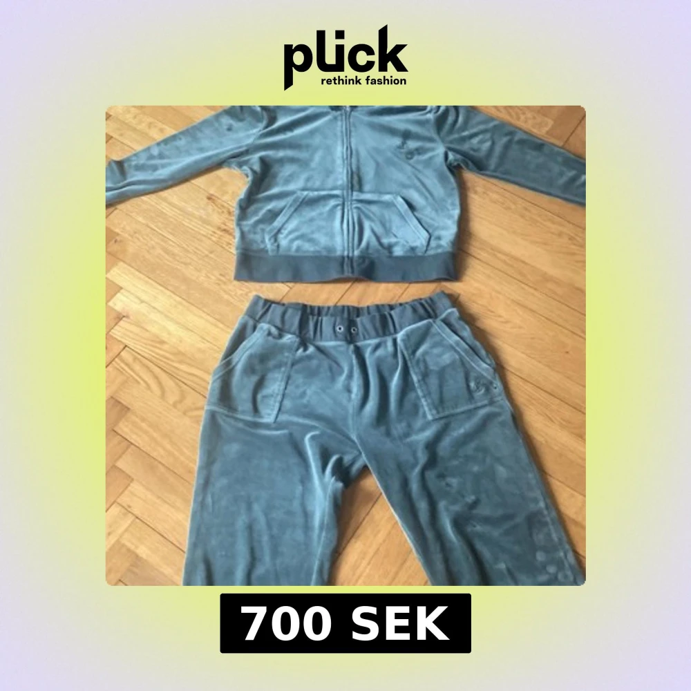 Grönt Juicy Couture sätt , stolek L på tröjan o xl på byckorna ! Bra skick o ser näst in till nytt ut 💚mvh thea i Halmstad