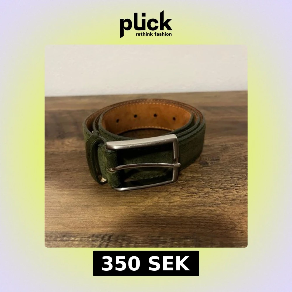 Snyggt bälte i mörkgrön mocka från Oscar Jacobson med klassiskt silverfärgat spänne. Insidan är i ljust skinn med synliga sömmar. Perfekt accessoar för att lyfta din outfit med en stilren touch.